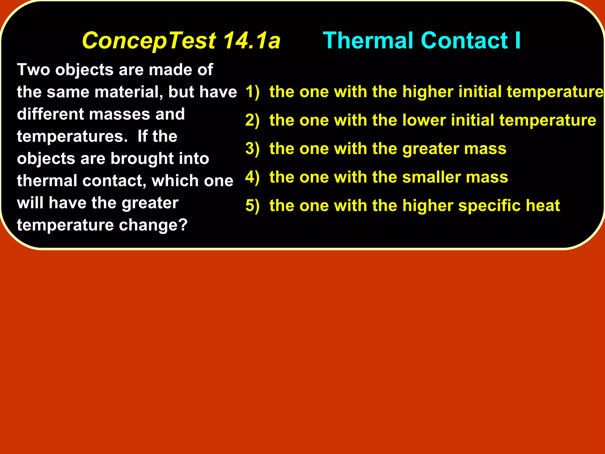 This document contains a series of physics concept tests related to thermal energy and heat transfer. The concept tests cover topics like thermal contact between objects, calorimetry, phase changes of water, and heat conduction. For each concept test, the document provides the question, answer, and a brief explanation of the reasoning.