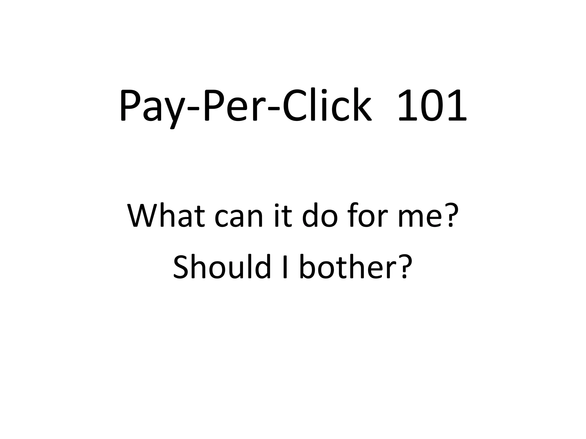 - The document provides an introduction to pay-per-click (PPC) advertising, discussing key terms, strategies for using PPC to drive awareness, consideration and conversion, and when it makes sense for a business to use search and display advertising.