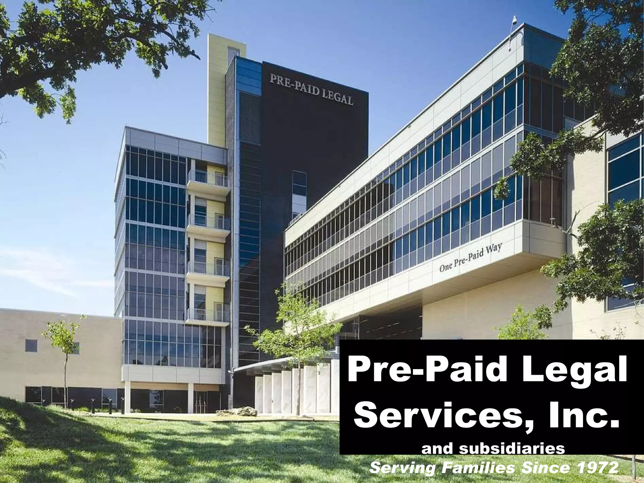 Pre-Paid Legal Services, Inc. offers a membership program providing legal coverage similar to medical insurance, covering various legal events for members and their families. Founded in 1972, the company has a proven track record and offers diverse services, including preventive legal assistance, trial defense, and identity theft protection for a monthly fee. The membership includes consultations, document reviews, and a range of legal services, while also emphasizing the importance of having accessible legal representation.
