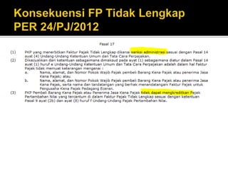 Dokumen tersebut membahas tentang pengertian Pengusaha Kena Pajak, Barang Kena Pajak, dan Jasa Kena Pajak dalam sistem Pajak Pertambahan Nilai di Indonesia. Secara garis besar dijelaskan bahwa semua barang dan jasa pada prinsipnya dikenakan PPN kecuali yang dikecualikan secara khusus dalam undang-undang.