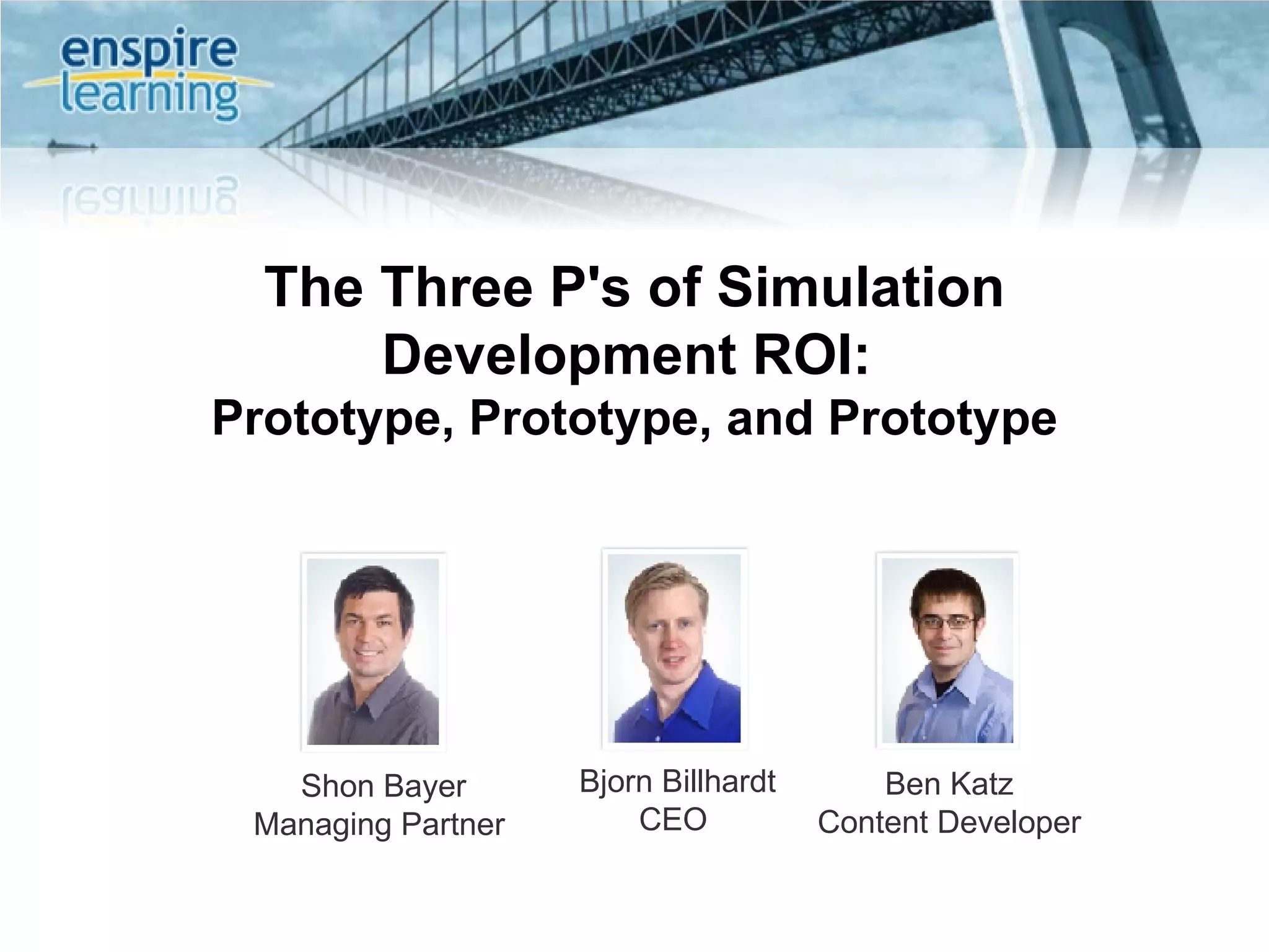 The document discusses the importance of prototyping simulations early and often. It recommends following an iterative process of prototyping, testing, gathering feedback, and refining. Specifically, it recommends: