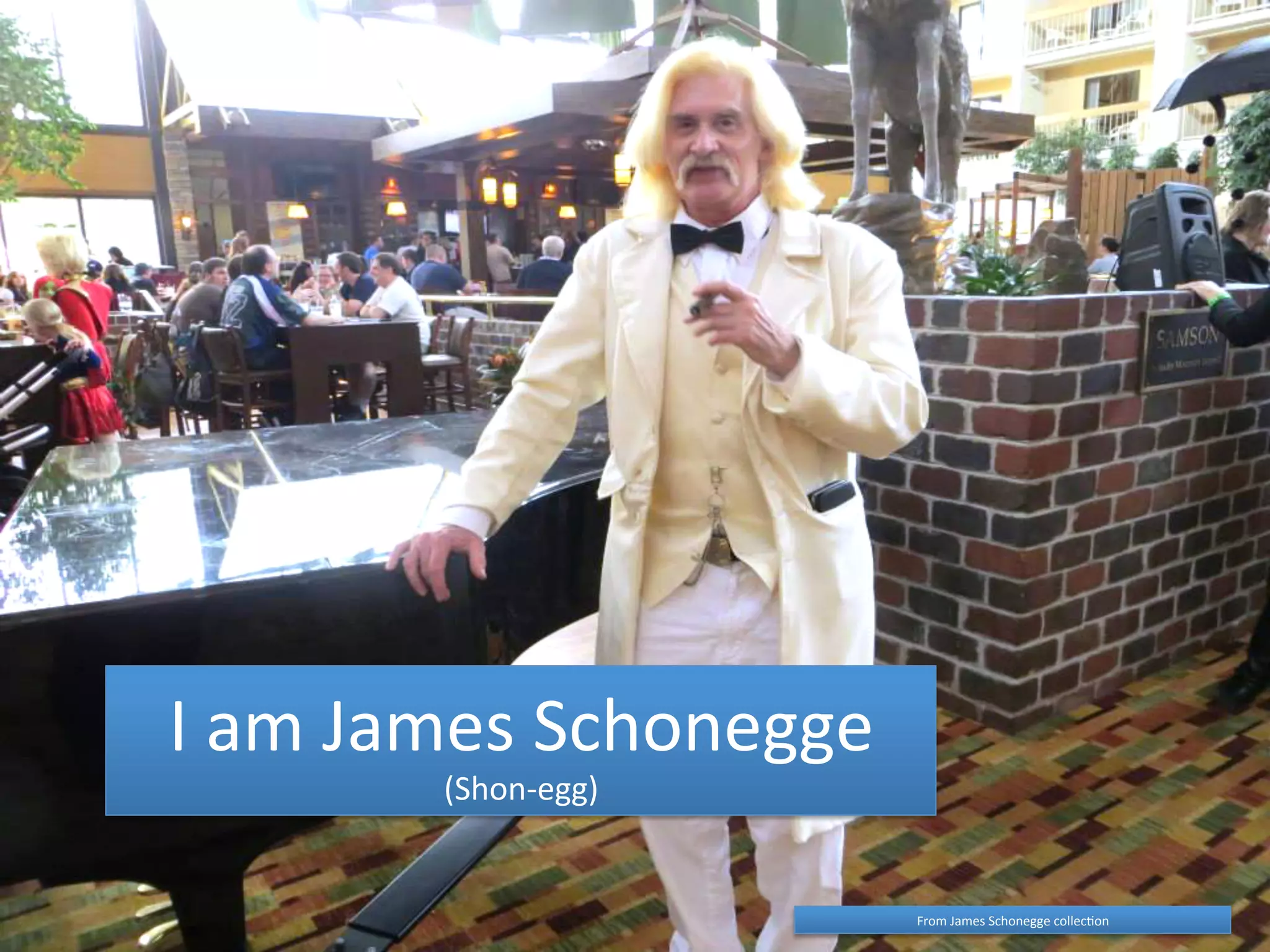 The document appears to be a profile of a person named James Schonegge. It describes him as an avid photographer who loves America, art, animals, and cycling. He believes in self-improvement and working hard everyday to better himself and his world. The profile references many photos from James Schonegge's collection and provides his email for contact.