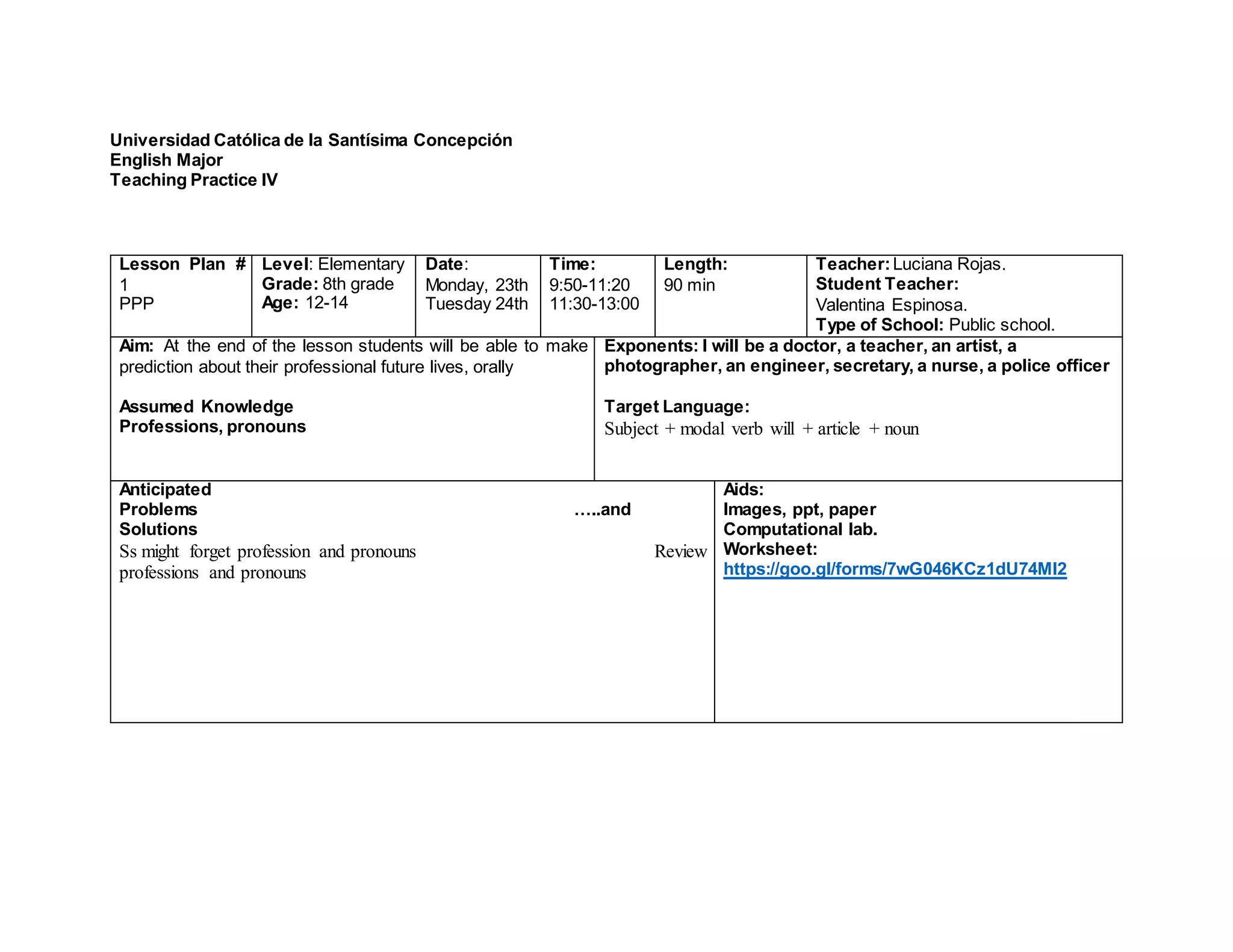 2) Students will practice predicting their future professions using sentences with modal verbs and articles.