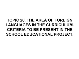 2. It outlines the objectives, contents, basic competences, methodology, and evaluation process for teaching foreign languages. The goals are to develop language skills like listening, speaking, reading and writing.