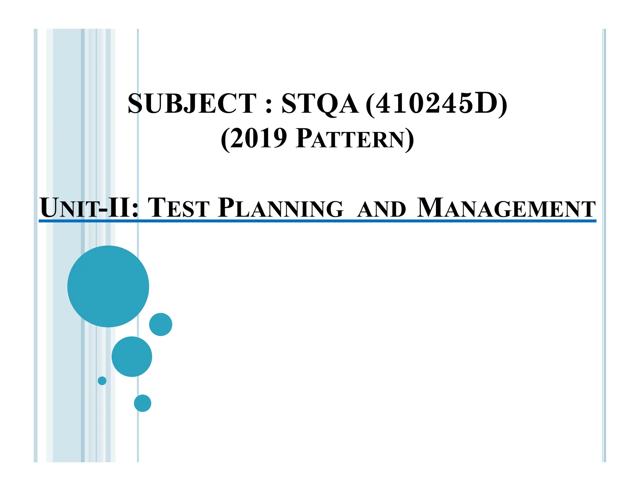 UNIT-II: TEST PLANNING AND MANAGEMENT