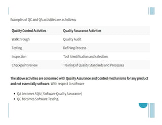 quality control aims at correcting the reasons for bugs