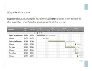estimations, deadlines, and resources required to