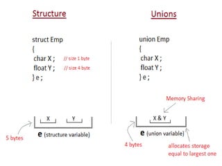The document discusses various topics related to structures and unions, files, and error handling in C programming. It includes: