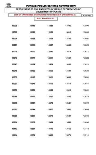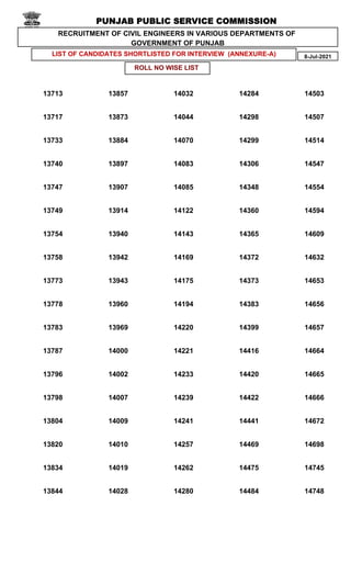 LIST OF CANDIDATES SHORTLISTED FOR INTERVIEW (ANNEXURE-A) 8-Jul-2021