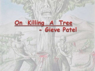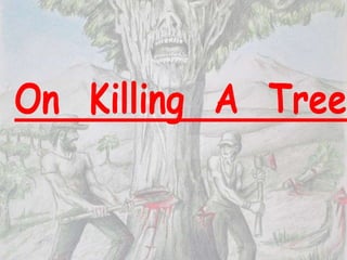 The poem describes the process of killing a tree. It notes that simply chopping or hacking at a tree is not enough to kill it, as the bark will heal and new growth will emerge. To truly kill the tree, one must pull its roots out of the ground, exposing the white and wet source of the tree's strength and life. Only then, by scorching and withering the root in the sun, is the tree fully killed.