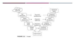 Testing throughout the software life cycle is important to ensure quality. There are four main test levels: component testing, integration testing, system testing, and acceptance testing. Each level has specific objectives. Component testing checks individual software units. Integration testing checks interfaces between components. System testing evaluates the entire system. Acceptance testing validates user needs are met. Testing is iterative and occurs at each stage of development models like the V-model. Different testing types target functionality, performance, security and other characteristics. Testing also occurs during maintenance to check changes and ensure other features still work as intended. Thorough testing at all stages is key to catching defects early and delivering high quality software.