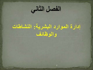 الوثيقة تتناول إدارة الموارد البشرية، وتتناول الأنشطة والوظائف المرتبطة بها وكيفية تحقيق الأهداف التنظيمية من خلال التخطيط والتوجيه والتنظيم والرقابة. كما تسلط الضوء على المهارات المطلوبة لتلك الوظائف والعلاقة بين الإدارات المختلفة. الوثيقة تقدم إرشادات حول كيفية تطوير استراتيجيات فعالة لإدارة الموارد البشرية لضمان الأداء الأمثل للمؤسسات.