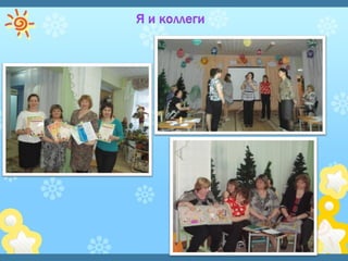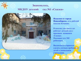Документ представляет собой презентацию педагогического опыта воспитателя из детского сада "Сказка", посвященную игровой деятельности как средству творческого и эмоционального развития детей. В нем описываются условия, созданные в учреждении для развития детей, включая разные игровые и обучающие центры, а также методологические подходы к воспитанию. Основная цель работы воспитателя заключается в раскрытии индивидуальных способностей ребенка через игру, что содействует формированию его личности.