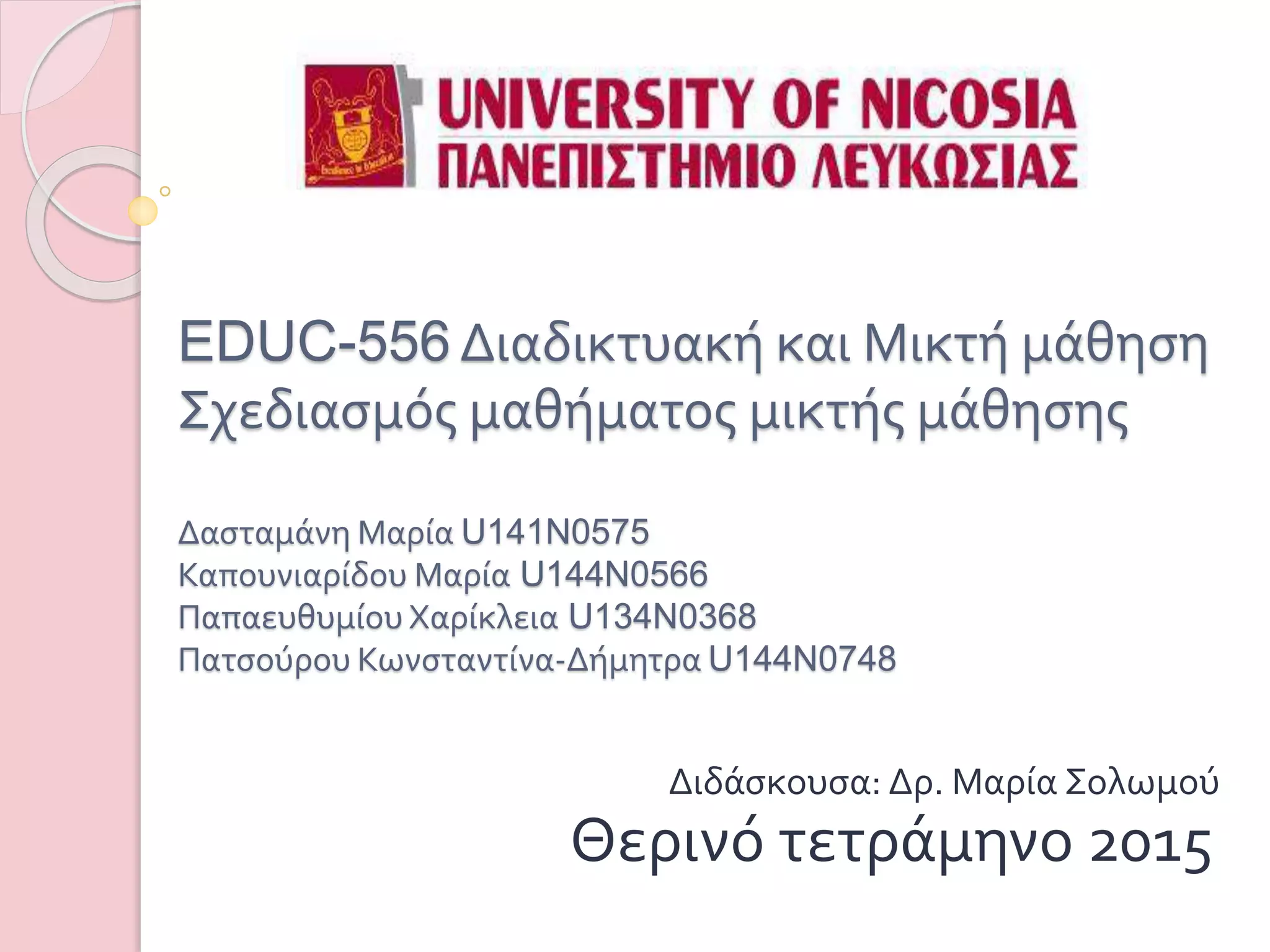 εφαρμογή της μικτής μάθησης, καταλήγουμε ότι: