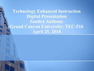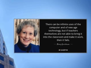 The document discusses the ISTE standards for technology integration in education. It outlines the standards for students, educators, administrators, computer science educators, and coaches. The standards define the digital skills needed for students to thrive in today's society and for educators to effectively teach with technology. It also discusses best practices for using technology in the classroom, including ensuring accessibility, using it to promote higher-order thinking, and focusing on digital citizenship.