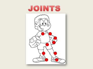 Joints like the hips, knees, ankles, shoulders, elbows and wrists allow the body to move by connecting bones to other bones. The leg has important joints at the hip, knee and ankle that enable walking and running. A person's arms rely on joints such as the shoulder, elbow and wrist to perform tasks.