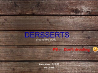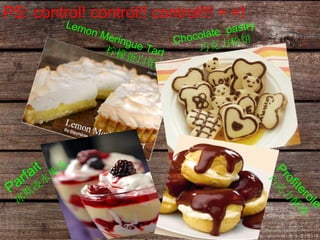 The document provides an overview of various desserts from around the world, including macarons from France, tiramisu from Italy, Sachertorte from Austria, and dessert menus from New Zealand. It discusses the ingredients and histories of these desserts, such as how macarons originated in France and tiramisu's debated origins in Italy. The document also briefly mentions some famous worldwide desserts and the world's most expensive dessert, Frozen Haute Chocolate.