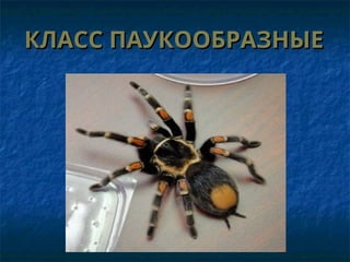 Документ описывает классы паукообразных, их морфологию, внутреннее строение и экологическую роль. Паукообразные насчитывают приблизительно 60 тысяч видов и обитают во всех средах, включая наземные и водные. Они играют важную роль в экосистемах, управляя популяциями насекомых, но некоторые из них также могут быть вредителями и переносчиками заболеваний.