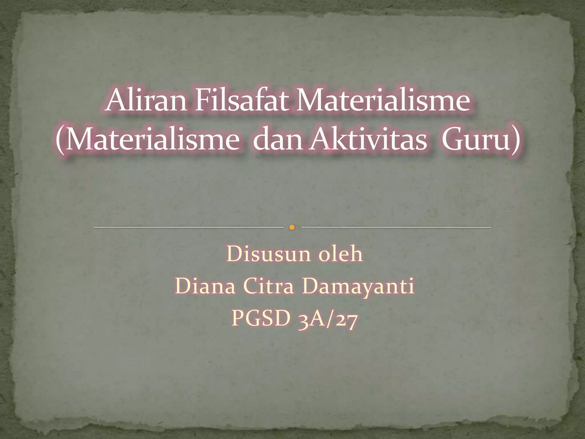 Dokumen ini menjelaskan pandangan materialisme, yang berpendapat bahwa segala sesuatu terdiri dari materi dan tidak ada alam spiritual, serta menggantikan idealisme dengan pengenalan inderawi. Ini mencakup filosofi dari tokoh-tokoh seperti Demokritos dan Feuerbach, serta menjelaskan dampak negatif dari materialisme dalam dunia pendidikan, di mana penekanan pada materi dapat mengabaikan nilai-nilai ide dan pengajaran yang tulus. Aliran materialisme juga memiliki variasi seperti materialisme dialektika dan metafisik, dengan implikasi signifikan dalam pendidikan yang mendorong perilaku efisien tanpa menghargai aspek moral dan spiritual.