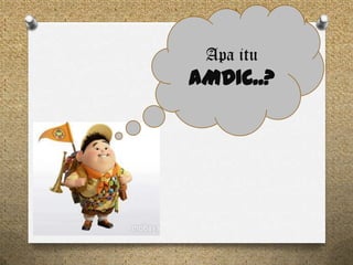 AMDIK (Ambalan Diponegoro - Cut Nyak Dien) adalah pramuka untuk anak-anak bantara di SMA Negeri 1 Ungaran, yang memiliki 38 dewan ambalan dan 35 sangga kerja. Kegiatan tahunan meliputi bakti sosial, penghijauan, dan latihan dasar kepemimpinan (LDK) untuk membangun mental dan sikap mandiri siswa. Kegiatan seperti kemah raya adalah wajib bagi siswa kelas X untuk membentuk karakter dan kepemimpinan.