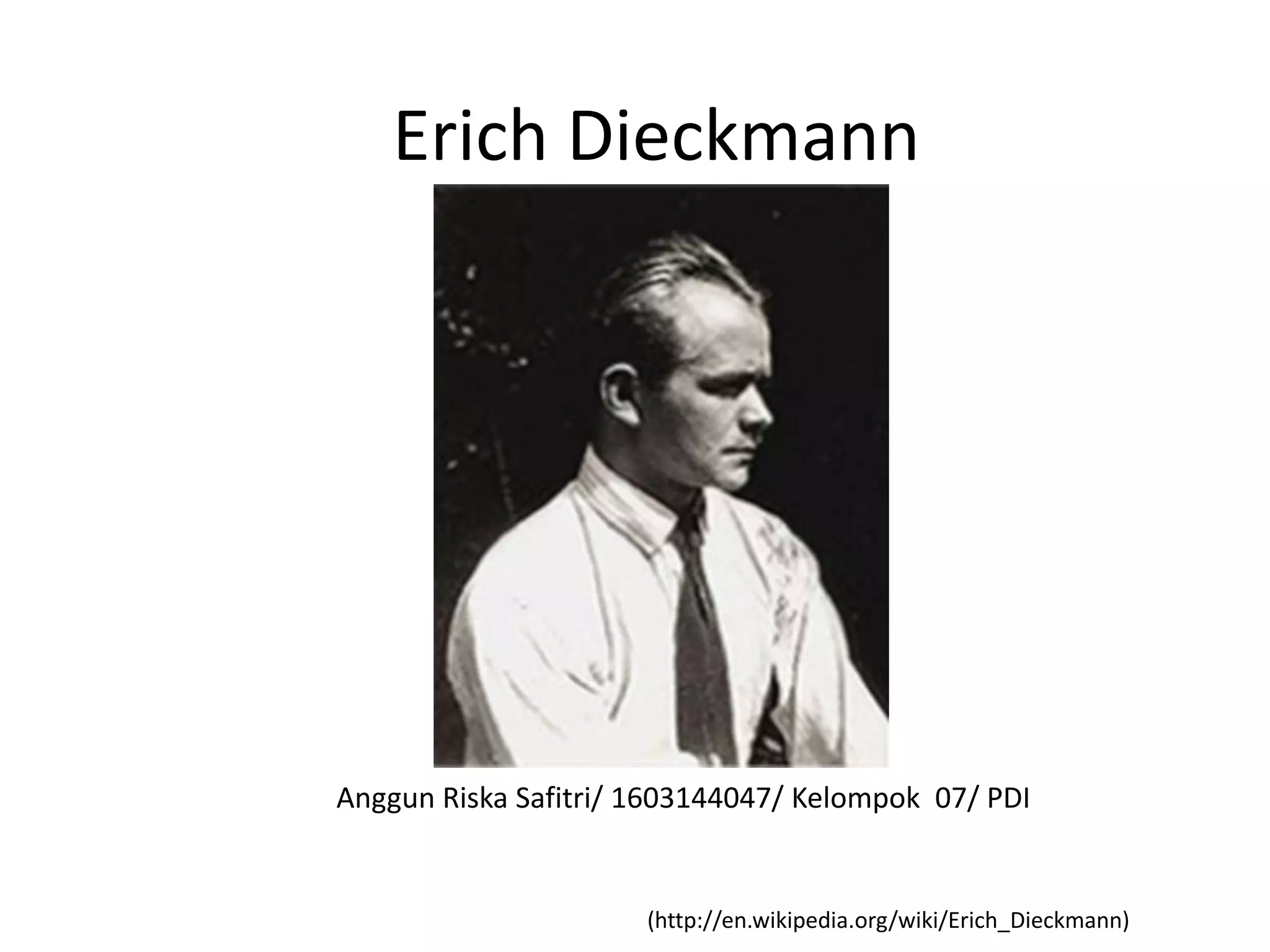 Erich Dieckmann studied architecture in Danzig before moving to Dresden to study painting and drawing. In 1921 he enrolled in the Bauhaus in Weimar where he worked as a carpenter until 1925. When the Bauhaus moved to Dessau, Dieckmann transferred to the State College of Architecture in Weimar where he headed the carpentry workshop until 1930. He then led the carpentry workshop at Kunstgewerbeschule Burg Giebichenstein in Halle until 1933. Dieckmann was one of the most important furniture designers at the Bauhaus, developing frame types for chair furniture. He experimented with steel pipes but was best known for his standard wooden furniture designs, which had