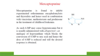 Antimetabolites: Mercaptopurine*, Thioguanine, Fluorouracil, Floxuridine, Cytarabine, Methotrexate*, Azathioprine