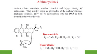 Antibiotics: Dactinomycin, Daunorubicin, Doxorubicin, Bleomycin