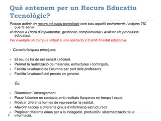 Podem definir un recurs educatiu tecnològic com tots aquells instruments i mitjans TIC