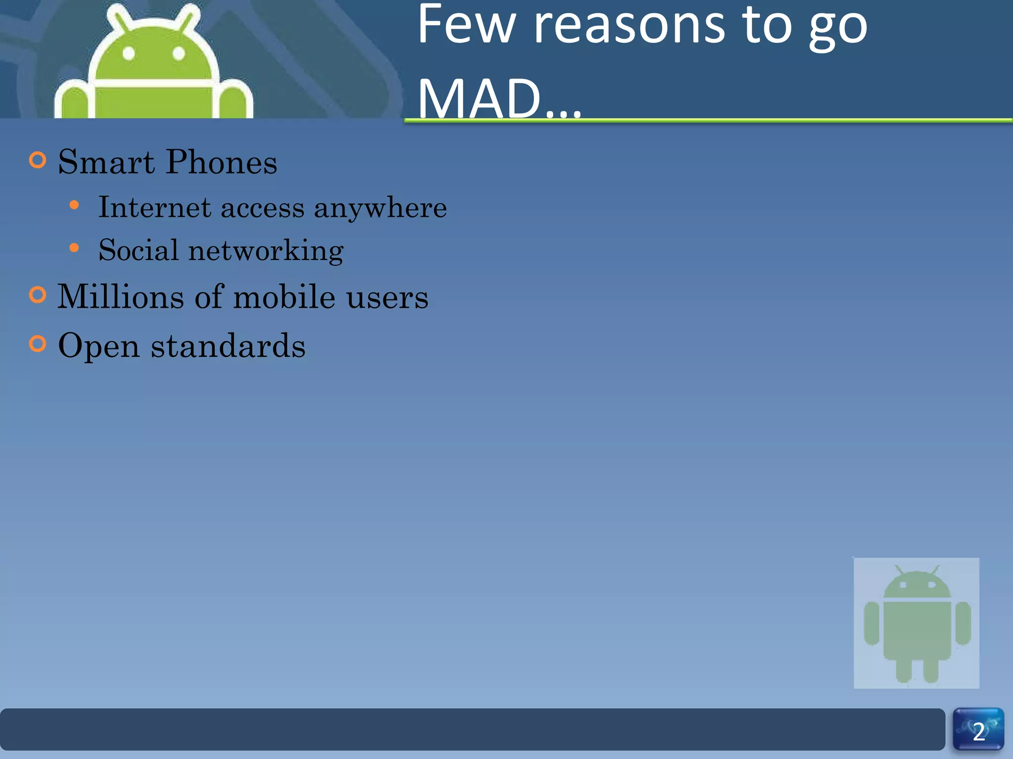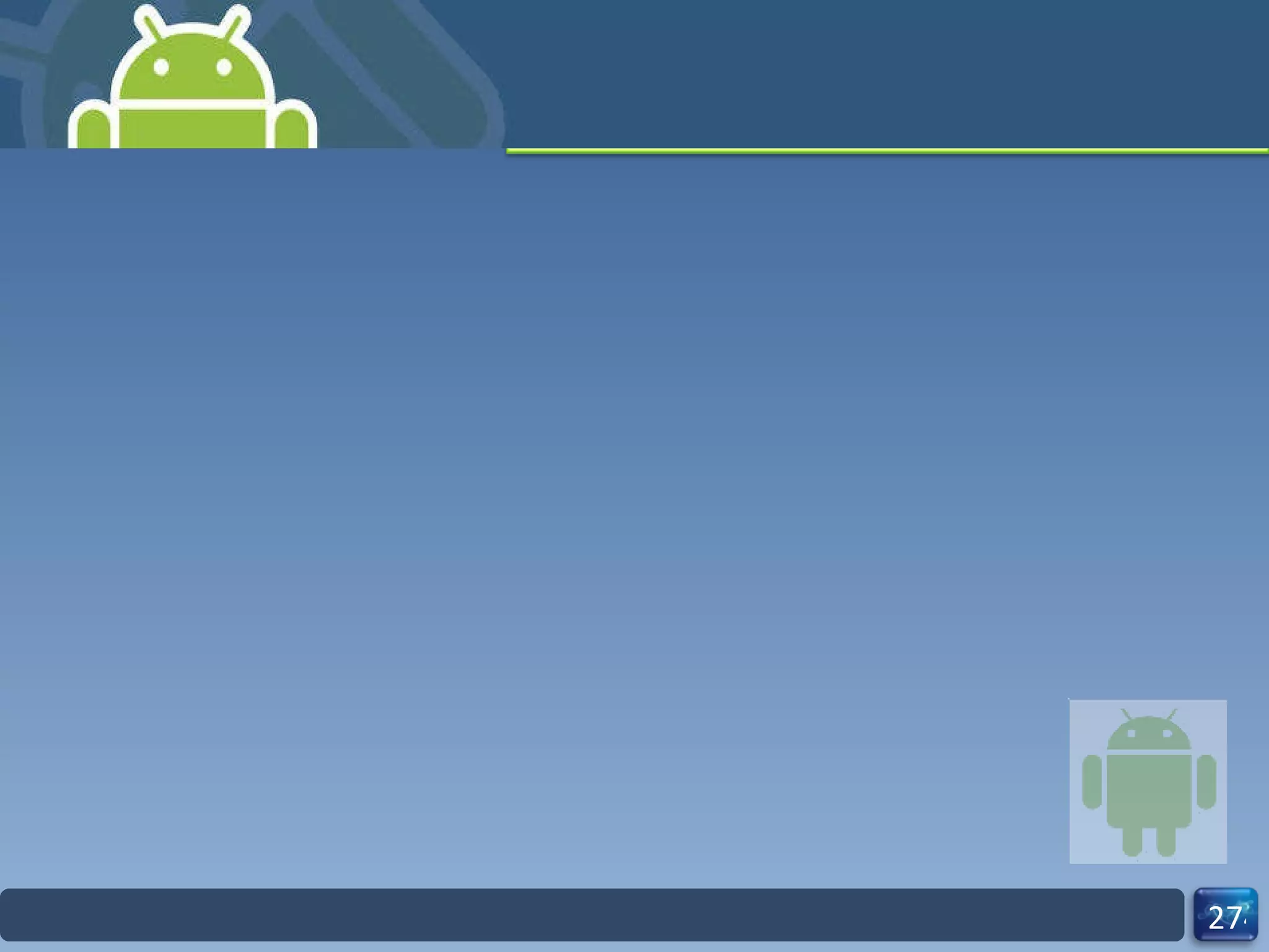 - Android applications are built using the Android SDK and its tools which allow compilation of Java code into an executable .apk file that can be installed and run on Android devices.
