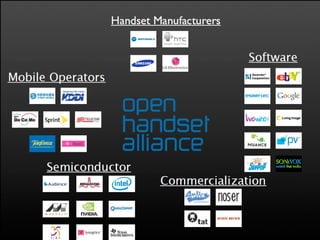 - The Android software stack includes the Linux kernel, native libraries, the Android runtime (which includes a Java virtual machine called Dalvik), and the Application Framework layer where Android applications run.