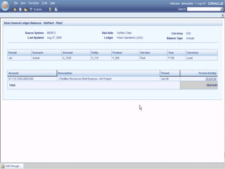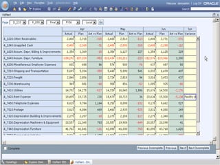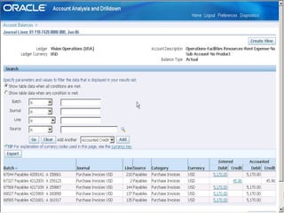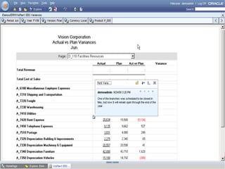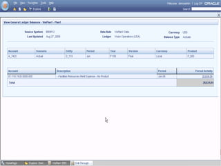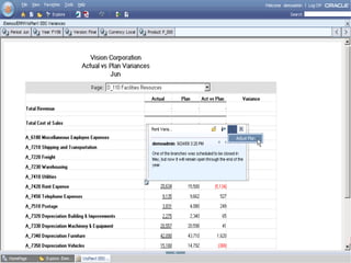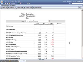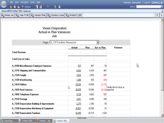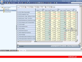 Oracle Enterprise Performance Management allows companies to link strategies to plans and execution, monitor financial and operational results against goals, and apply analytics to drive performance improvement. The presentation outlines Oracle's EPM products including Financial Data Quality Management, which helps ensure data integrity across the enterprise. A new feature called the ERP Integrator is introduced that provides direct integration between ERP sources like Oracle E-Business Suite and PeopleSoft with EPM applications to map data, validate rules and allow drill-through of data. The roadmap discusses ongoing work to improve ERP support and plans to enhance integration with additional ERP and cloud systems.