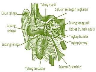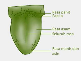 Teks tersebut membahas tentang lima indra manusia yaitu mata, telinga, hidung, lidah, dan kulit. Setiap indra dijelaskan anatominya, cara kerjanya, dan perawatannya. Indra-indra tersebut berperan penting dalam menangkap rangsangan dari lingkungan.