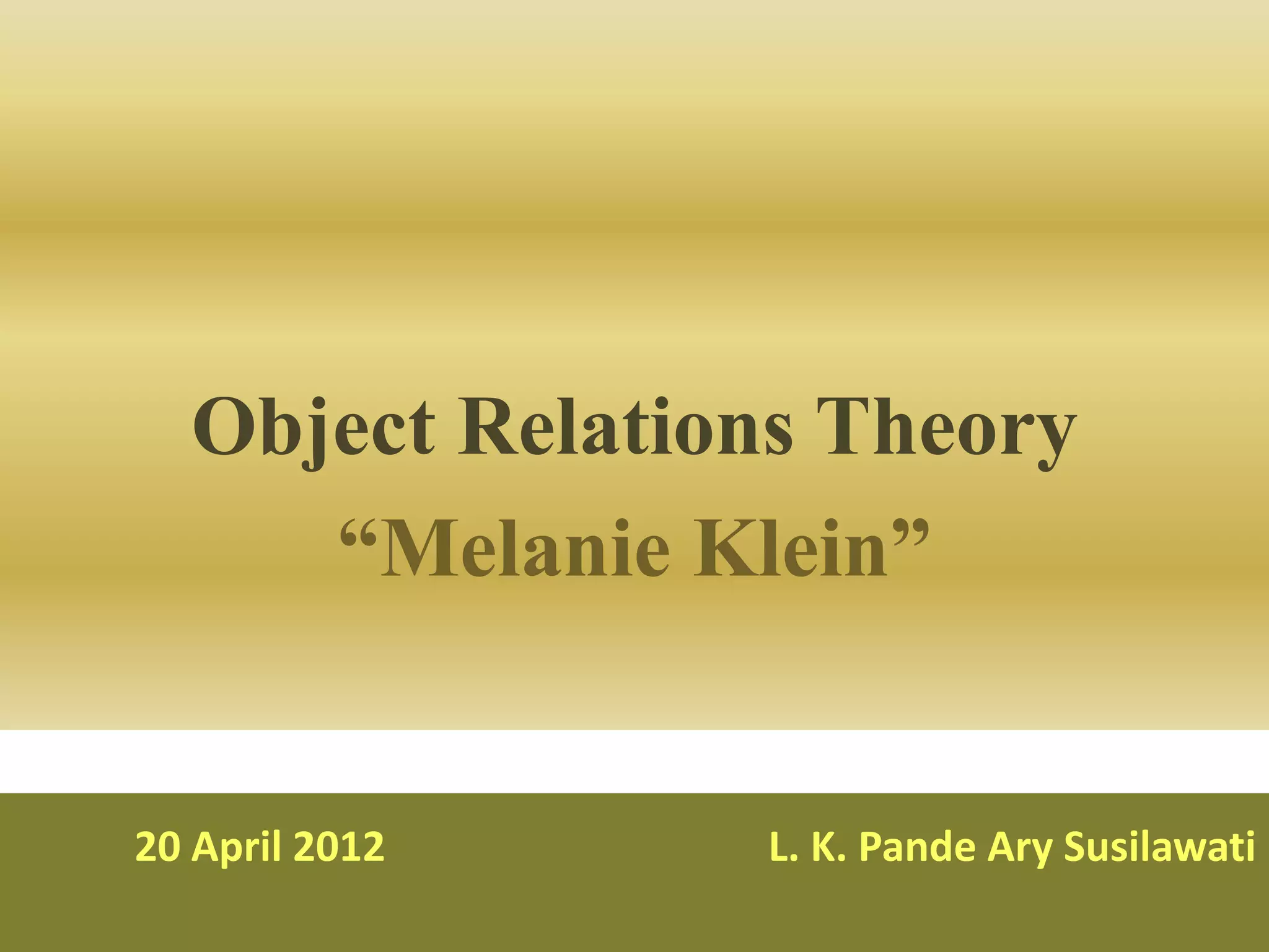 Dokumen tersebut merangkum biografi dan teori psikolog Melanie Klein. Klein mengembangkan teori Object Relations yang menekankan pentingnya hubungan awal bayi dengan ibunya dan bagaimana hal itu memengaruhi hubungan ke depannya. Klein memaparkan konsep posisi paranoid-schizoid dan depresif yang dijalani bayi, serta mekanisme pertahanan diri seperti introyeksi dan proyeksi yang digunakan bayi untuk menghadapi kecemasan.