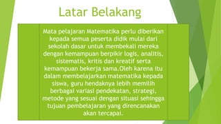 Dokumen tersebut membahas dua model pembelajaran kooperatif yaitu STAD dan Jigsaw. Model STAD menekankan pada kerja sama antar siswa untuk saling membantu memahami materi, sedangkan model Jigsaw membagi tugas belajar kepada kelompok untuk diajarkan kembali ke kelompok asal. Kedua model tersebut dirancang untuk mencapai tujuan pembelajaran secara kooperat