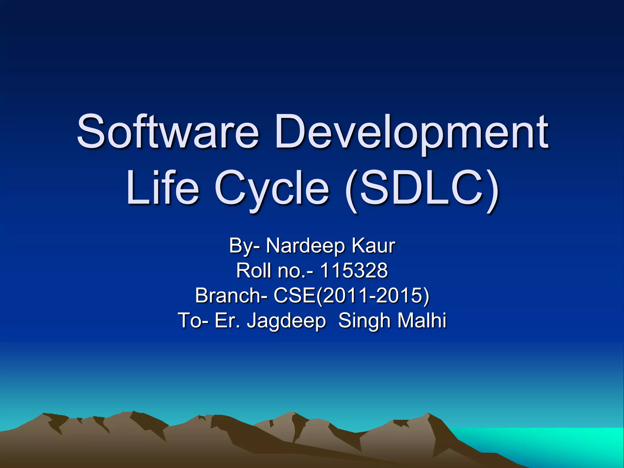This document provides an overview of various software development life cycle (SDLC) models including Waterfall, V-Shaped, Prototyping, Rapid Application Development (RAD), Incremental, Spiral, and Agile methods. Key aspects of each model are described such as typical phases, when each model is best suited, strengths, and weaknesses. Tailoring SDLC models to best fit individual projects is also discussed. The document concludes with a brief section on quality assurance and elements that should be considered in a quality assurance plan.