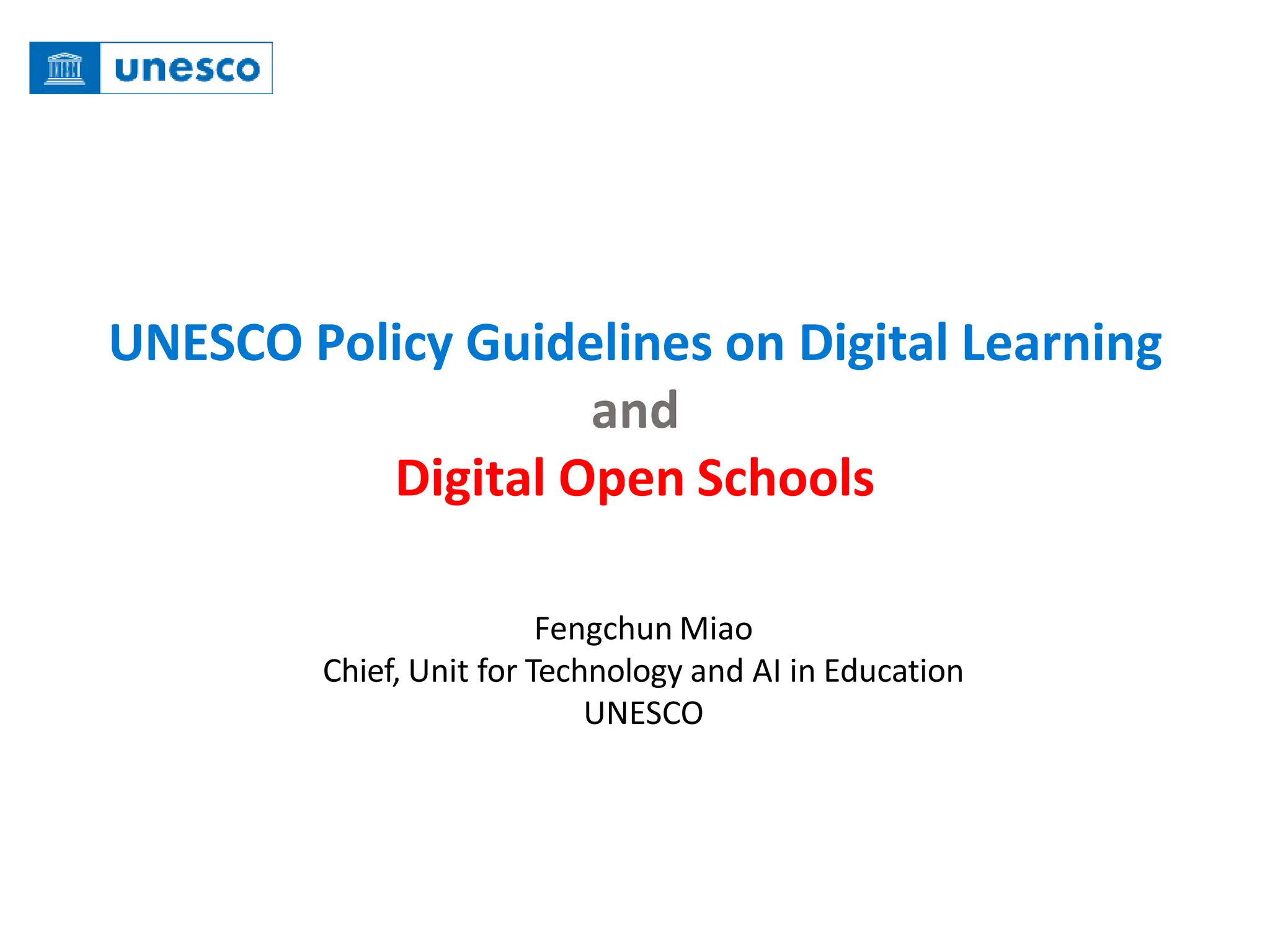 The UNESCO policy guidelines outline strategies for enhancing digital learning through a structured framework that supports national digital policies across over 60 countries. It emphasizes the importance of integrating digital content, capacities, and connectivity to create inclusive digital open schools for diverse learners, especially in response to educational disruptions. Key focus areas include humanistic approaches to educational governance, fostering digital transformation, and providing equitable access to educational resources and technology.