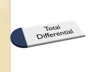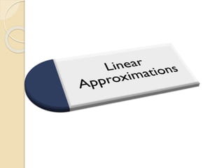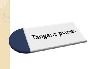 The document discusses concepts related to calculus including tangent planes, normal lines, and linear approximations. It provides definitions and equations for calculating the tangent plane to a surface, the normal line to a curve or surface, and using the tangent line as a linear approximation near a given point on a function. Examples are given to demonstrate finding the total derivative of a function and using the tangent line as a linearization.