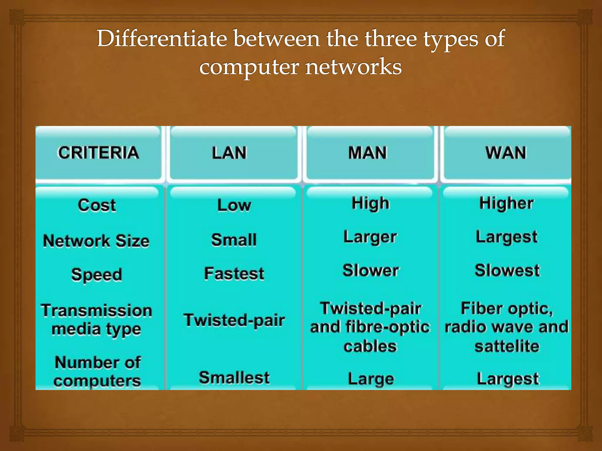This document contains information about computer networks presented by Darshit Narechania. It defines a computer network as two or more connected computers that share resources and exchange files. The need for networks is described as file sharing, resource sharing, communication, remote access, and data protection. Common connection devices include routers, gateways, repeaters, bridges, hubs, and modems. The main types of networks covered are local area networks (LANs), wide area networks (WANs), and metropolitan area networks (MANs). LANs connect computers in a small local area like a home or office, while WANs connect LANs over a larger area like a college campus or between cities. MANs interconnect