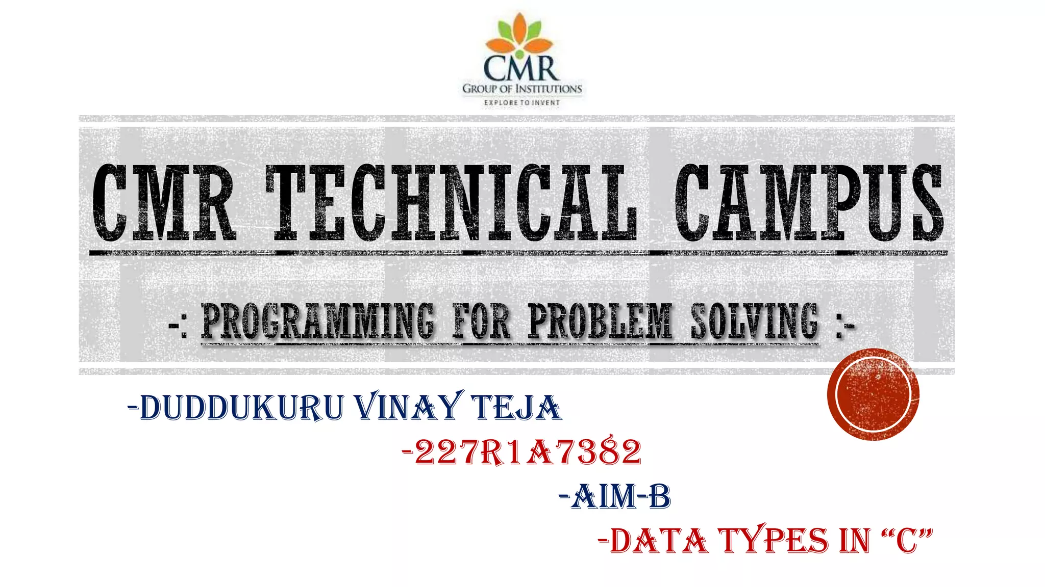 This document discusses different data types in C programming. It defines data types as specifying the type of data entered into programs and how that data is stored. The primary data types discussed are char, int, float, double, and void. Derived data types build upon primary types and include arrays, pointers, functions, and strings. User-defined data types can also be created using the typedef keyword to customize existing data types for specific needs. Common derived data types are pointers, arrays, unions, and structures.