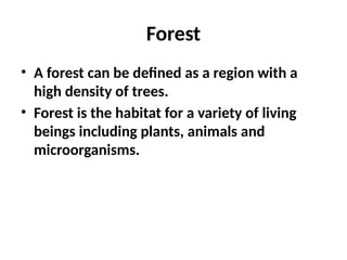 Bengal. The trees found in these forests are Teak, Sal, Sandalwood, Kusum,