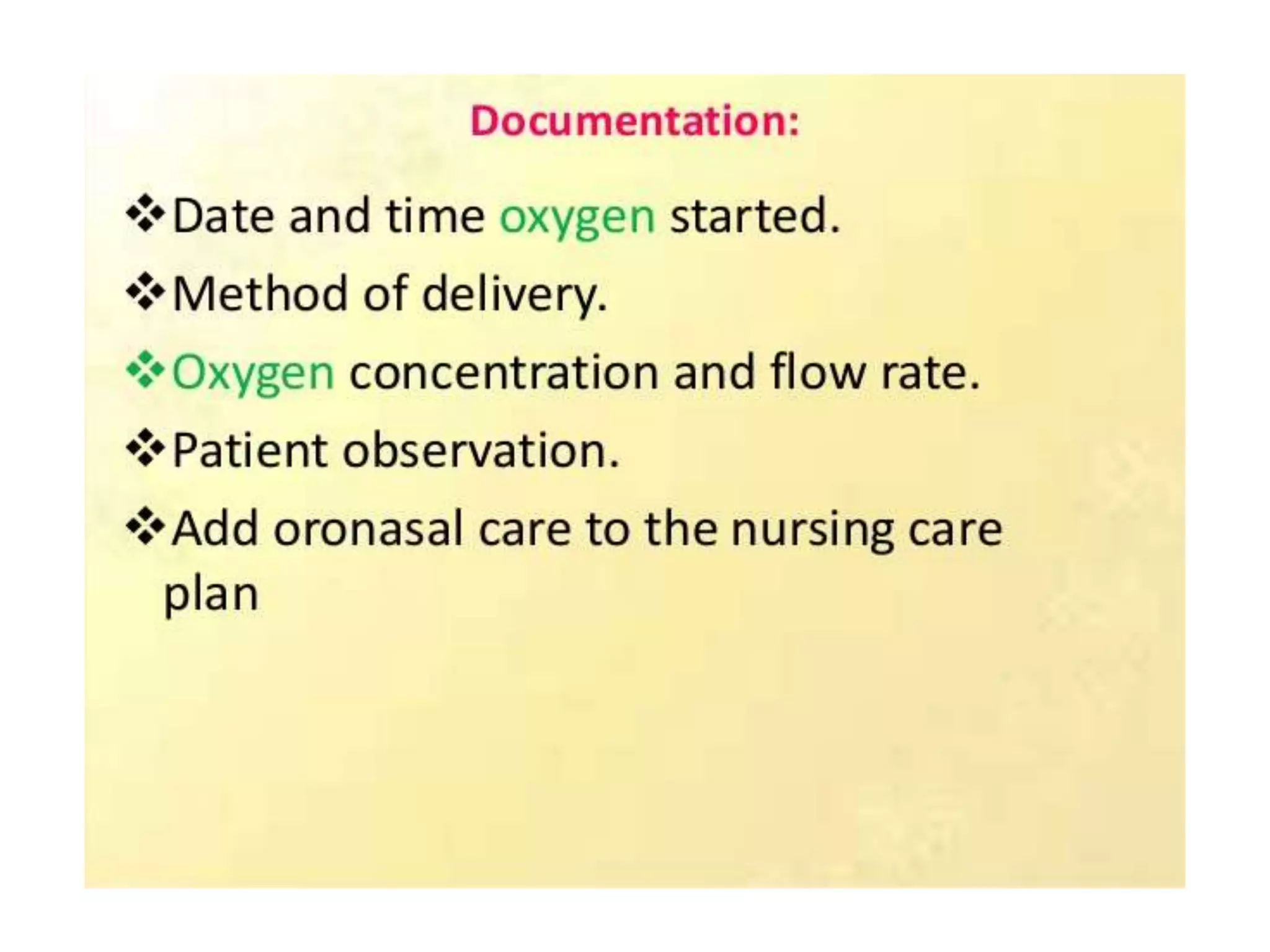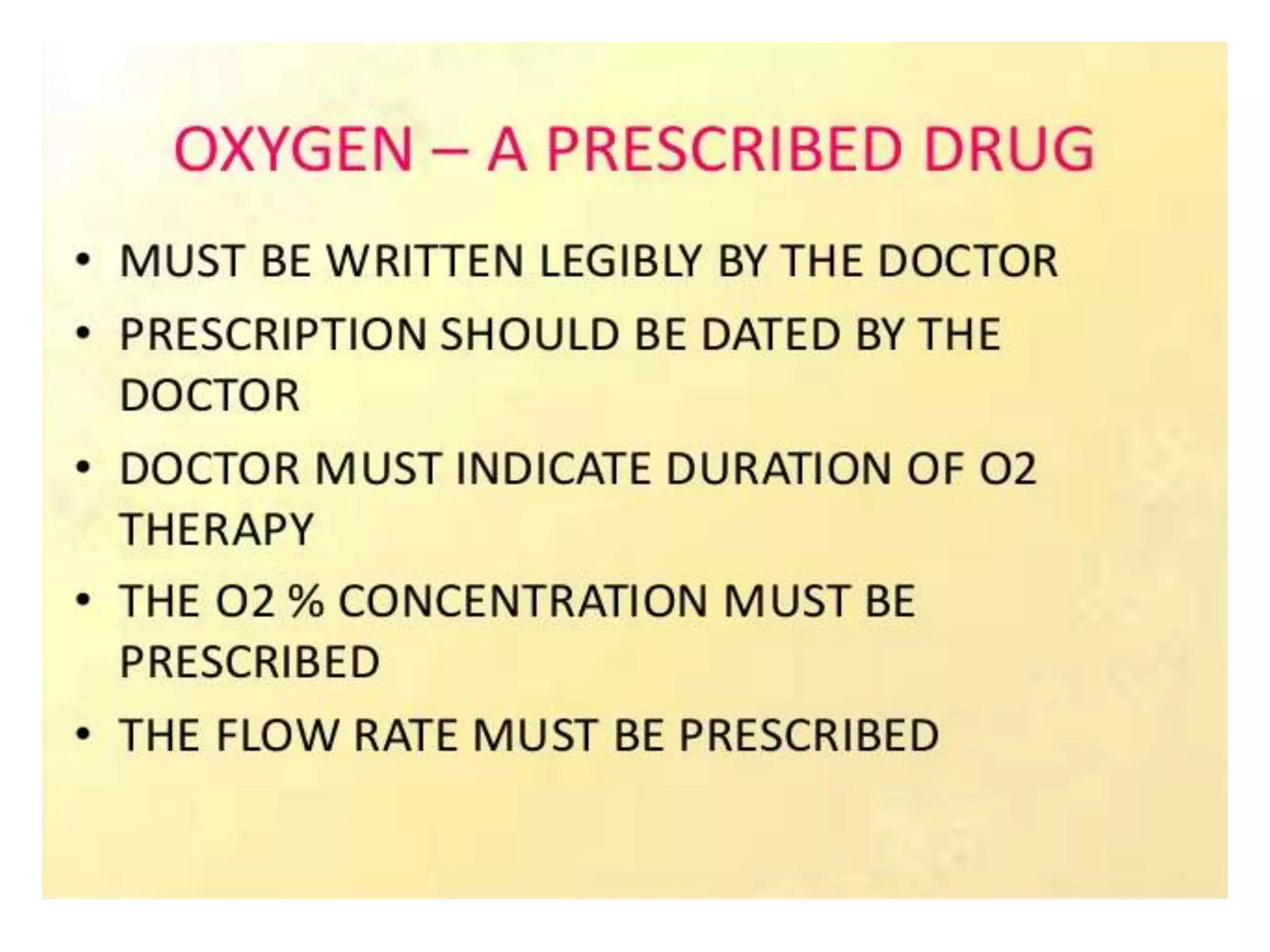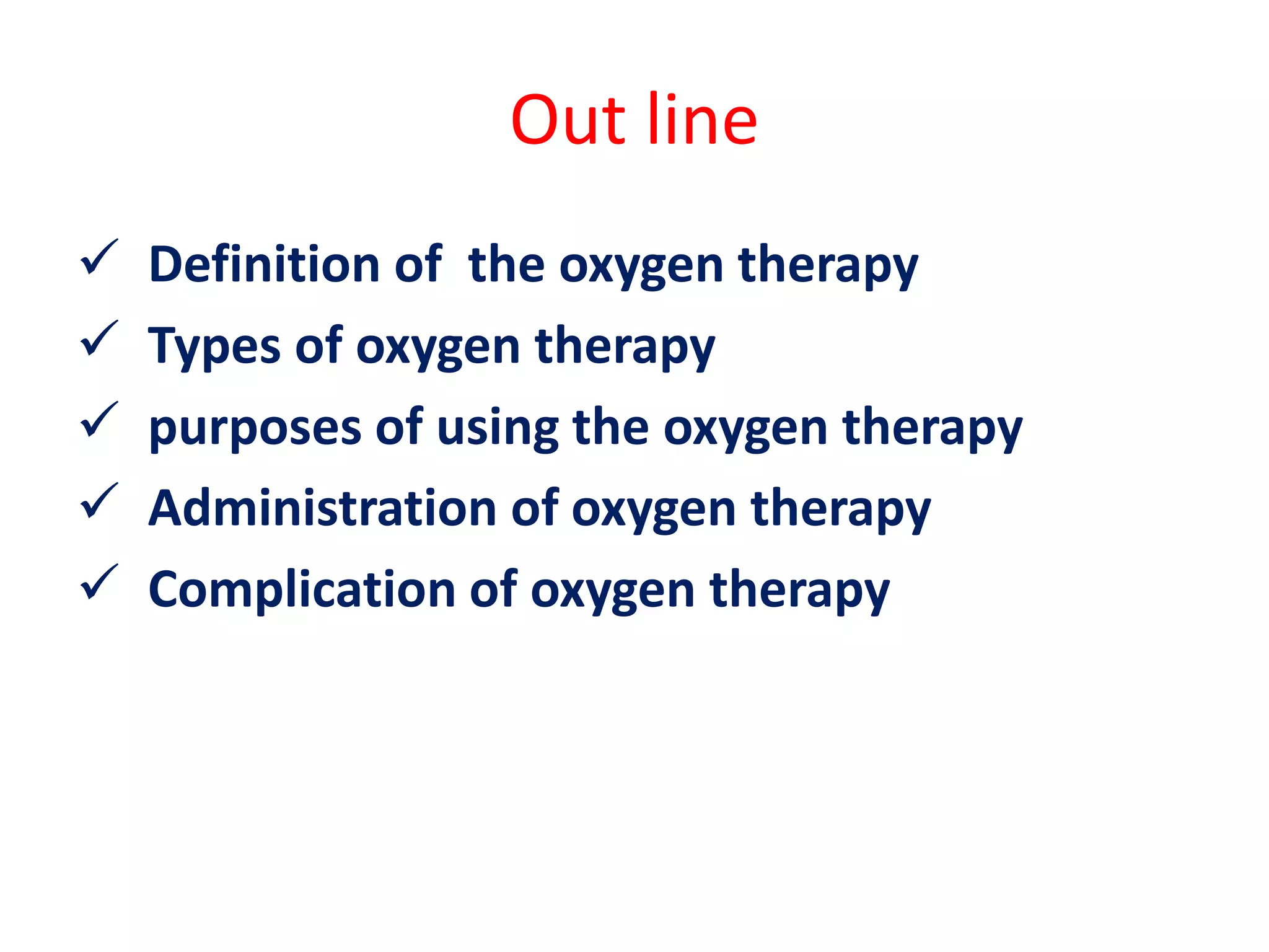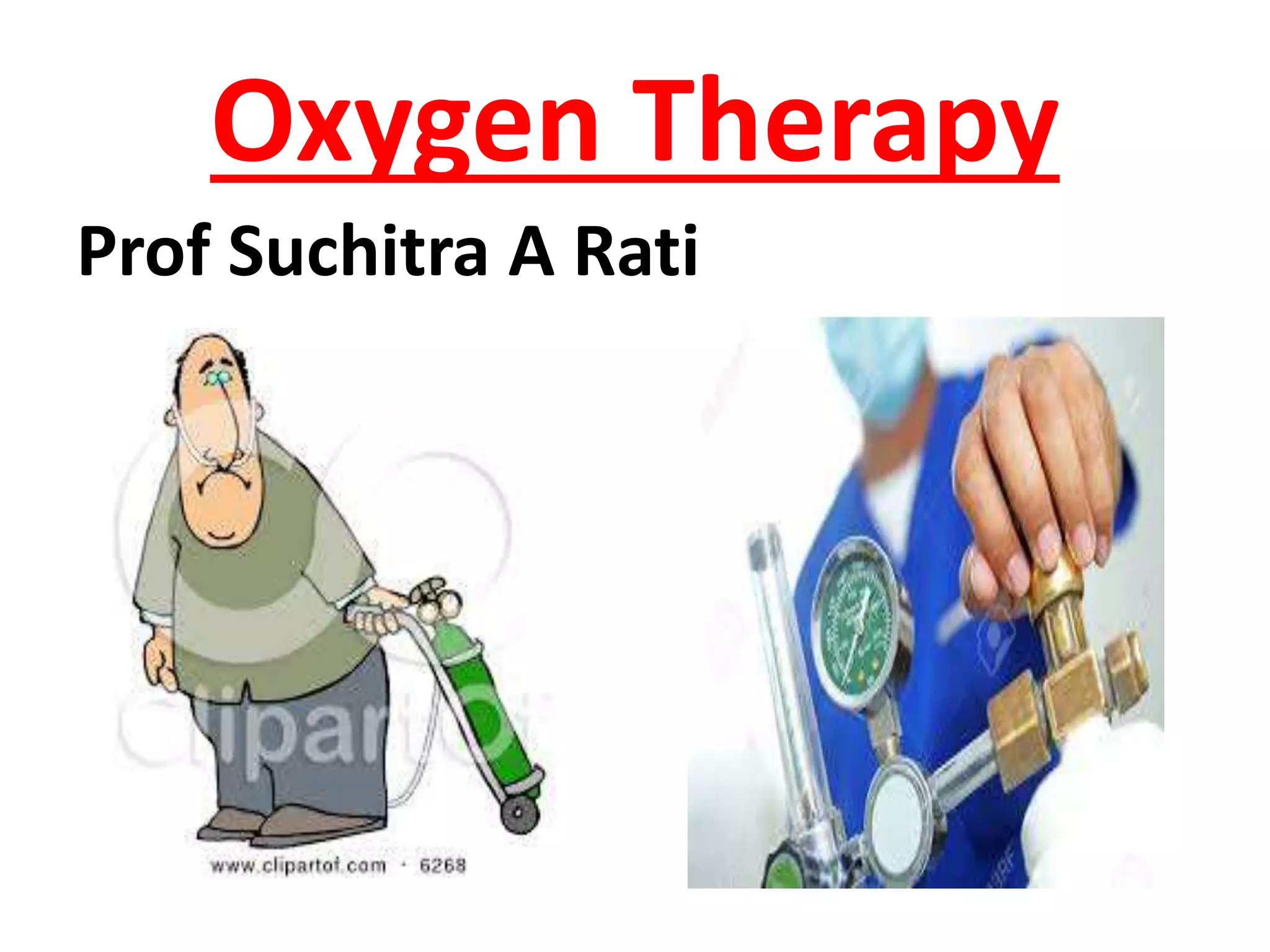 Oxygen therapy involves administering oxygen at concentrations higher than in the air to treat various medical conditions. There are various methods of oxygen delivery including nasal cannulas, face masks, venturi masks, and tents. The goal is to increase oxygen saturation levels in the blood. Potential complications include oxygen toxicity if delivered at too high of a concentration for too long. Precautions must also be taken due to the flammability of oxygen.