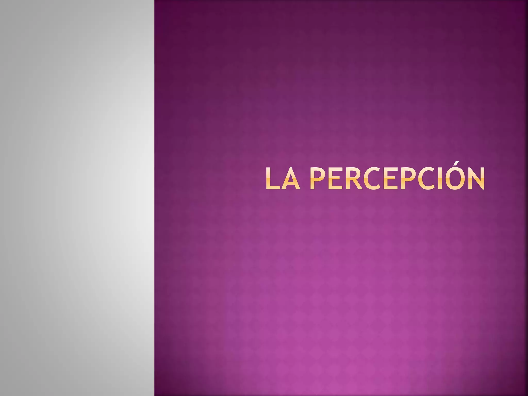 El documento describe los conceptos fundamentales de la psicología de la Gestalt. Explica que los sentidos reciben estímulos del medio ambiente y los transmiten al cerebro como impulsos nerviosos, y que la percepción implica interpretar y dar significado a esas impresiones sensoriales de acuerdo con leyes perceptivas innatas. También describe los conceptos de figura y fondo, y varias leyes perceptivas como la continuidad, proximidad, semejanza y cierre.