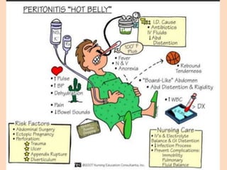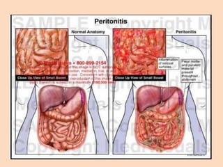 Dokumen tersebut membahas kasus peritonitis difus akibat appendisitis perforasi pada pasien laki-laki berusia 14 tahun. Pasien mengeluh nyeri perut selama seminggu dan demam. Pemeriksaan fisik menunjukkan tanda-tanda peritonitis. Hasil pemeriksaan laboratorium dan diagnostik mendukung diagnosis appendisitis perforasi. Pasien dioperasi dan didiagnosis dengan peritonitis difus akibat appendisitis perforasi.