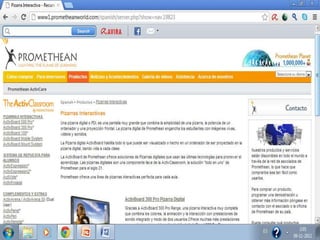 The document lists various educational technology products, including software and hardware such as Easiteach Next Generation, Mimiostudio, ActivInspire, and different models of Promethean boards. These products are aimed at enhancing teaching and learning experiences. It highlights specific Activboard models and their capabilities.