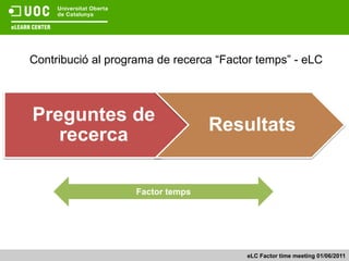 Contribució al programade recerca “Factor temps” - eLCFactor tempseLC Factor time meeting 01/06/2011