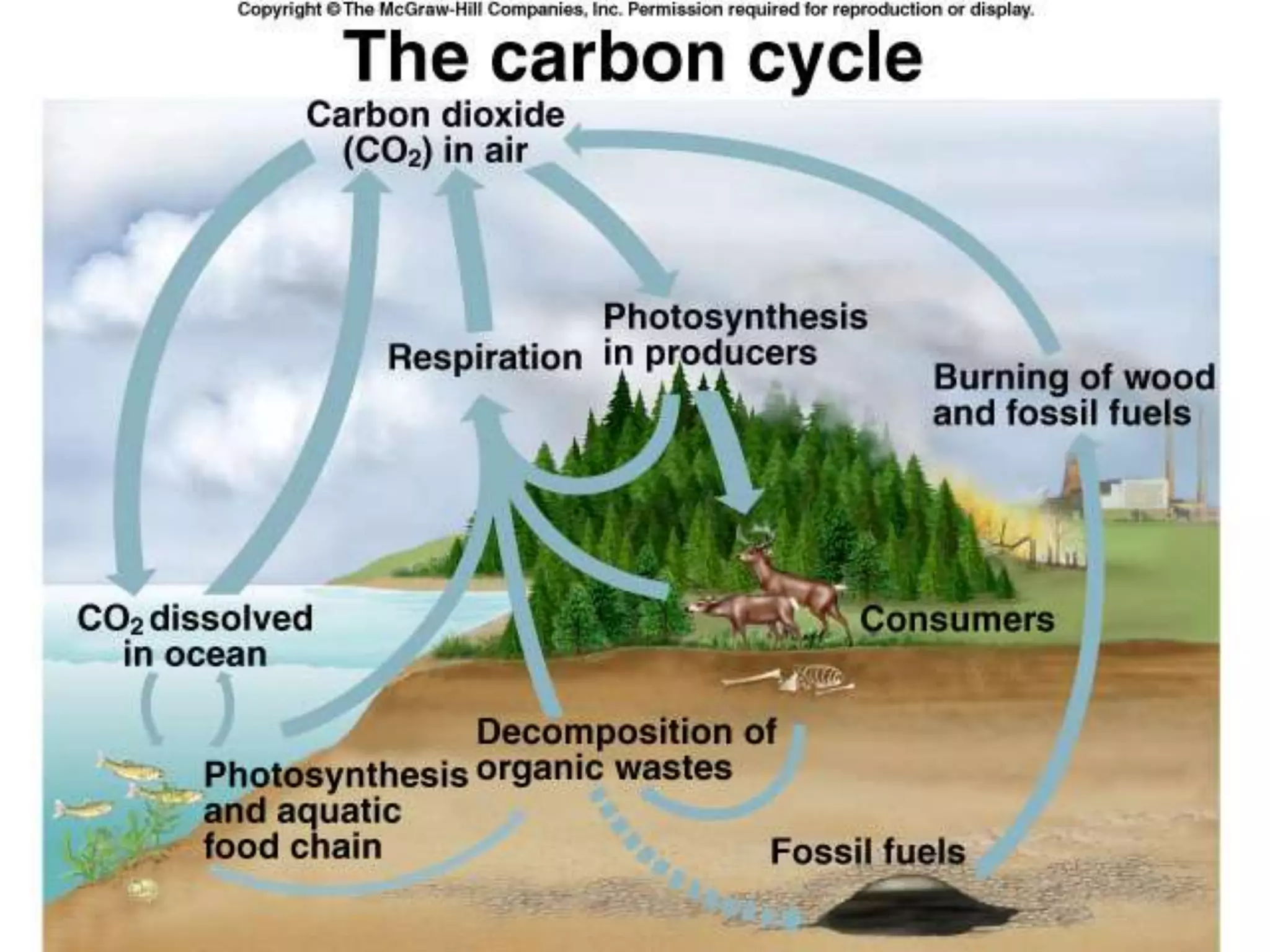 Carbon and oxygen are two of the most abundant elements on Earth. Carbon is found in all living things and is the basis of organic molecules. It cycles continuously between the atmosphere, living things, oceans, and geologic reservoirs. Oxygen is produced through photosynthesis and is essential for cellular respiration. It cycles between the atmosphere, biosphere, and lithosphere through natural processes. Disruptions to these elemental cycles can impact climate and ecosystems.