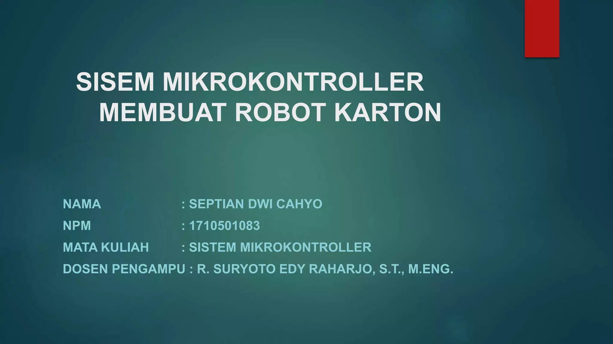 Dokumen ini membahas tentang mikrokontroler, BASCOM AVR, dan motor DC. Mikrokontroler merupakan sistem komputer terintegrasi yang memiliki mikroprosesor, I/O, memori, dan ADC di dalam satu chip. BASCOM AVR adalah IDE untuk mengembangkan program dan menanamkannya pada mikrokontroler AVR. Motor DC mengubah energi listrik menjadi gerak menggunakan tegangan DC dan dapat berputar searah atau berlawanan