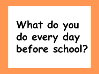 The document outlines the speaker's daily routines, including waking up in the morning, watching TV in the afternoon, reading a book in the evening, and going to bed at night. Most of the morning routine is unspecified beyond just waking up, TV watching is the only afternoon activity mentioned, and the evening involves reading before sleep at night.