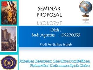 Seminar proposal yang membahas upaya Mohammad Natsir dalam bidang politik dan ekonomi untuk mencapai stabilitas nasional Indonesia pada tahun 1946-1951. Metode penelitian yang digunakan adalah penelitian sejarah dengan mengumpulkan data dari buku, dokumen, dan arsip.