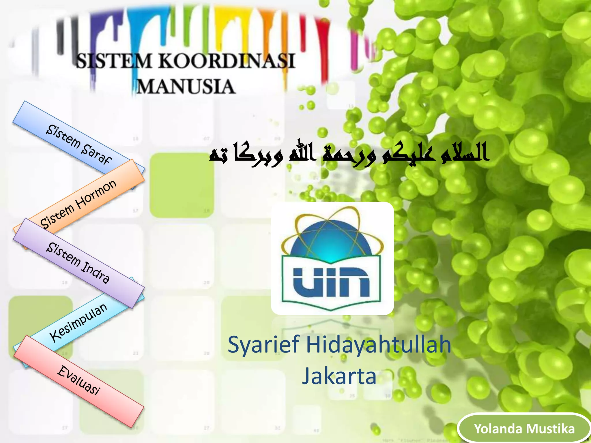 Dokumen ini menjelaskan sistem saraf dan hormonal, mencakup struktur neuron, jenis-jenis neuron, serta fungsinya dalam gerak sadar dan refleks. Selain itu, dijelaskan tentang kelenjar endokrin dan peran hormon dalam mengatur berbagai aktivitas tubuh. Terdapat juga penjelasan mengenai gangguan pada sistem saraf dan hormon, serta sistem indra dan fungsinya.